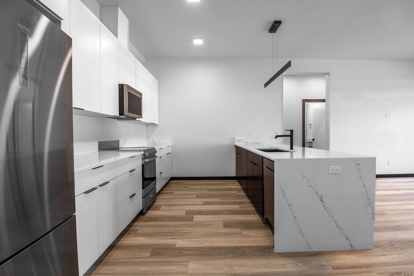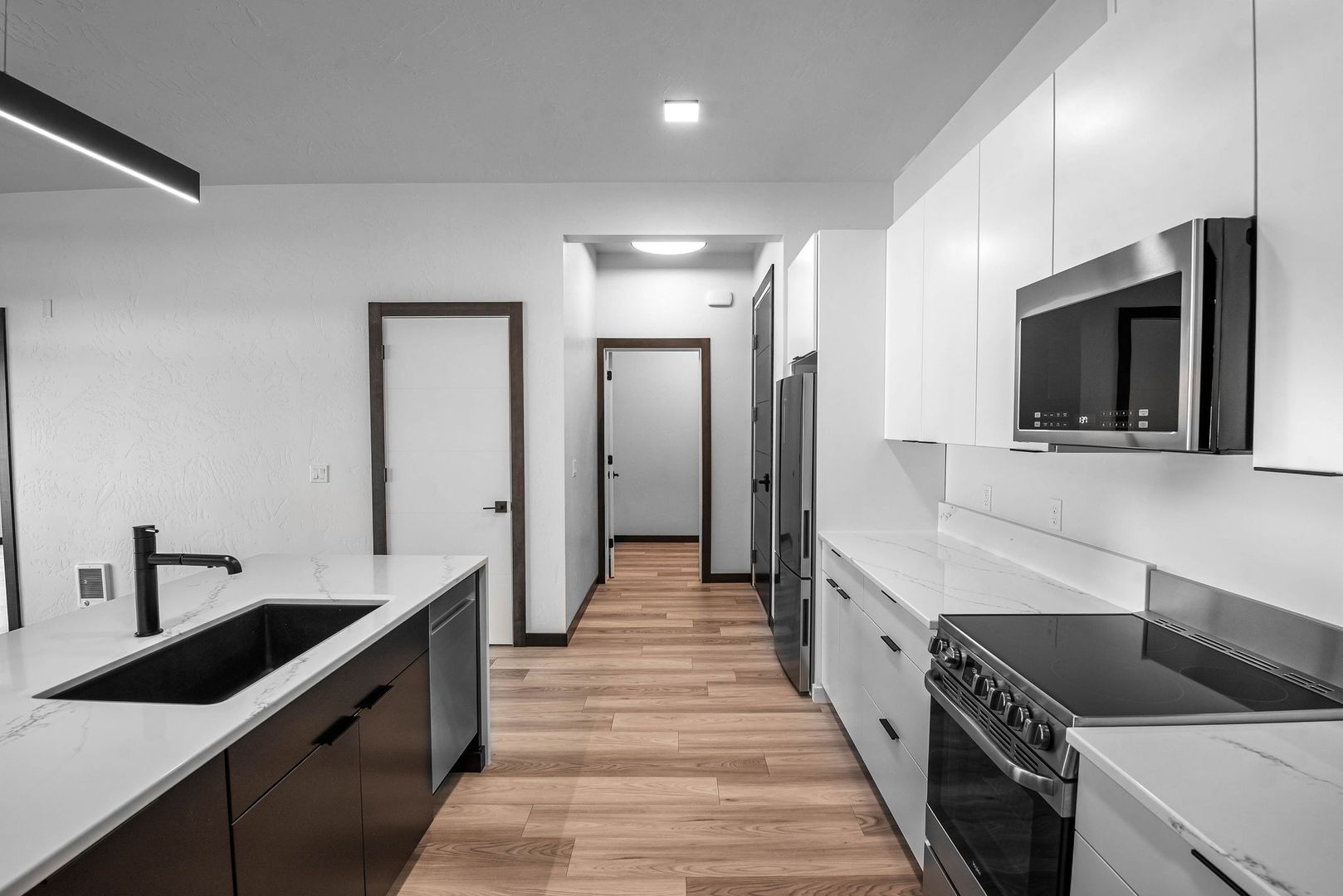 Enjoy an open-concept layout with high-end finishes, stainless steel appliances, in-unit laundry, and large windows that fill the space with natural light. The sleek design blends comfort and style, perfect for modern living.