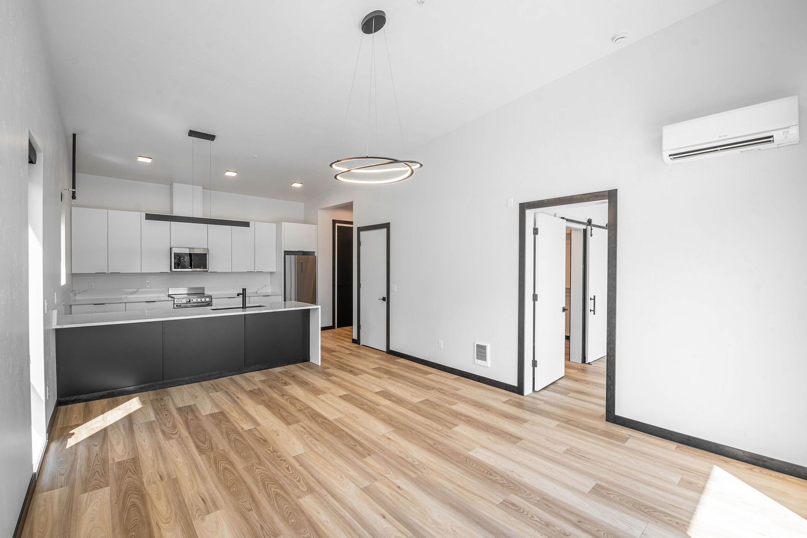 Enjoy an open-concept layout with high-end finishes, stainless steel appliances, in-unit laundry, and large windows that fill the space with natural light. The sleek design blends comfort and style, perfect for modern living.